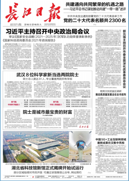 【长江日报】头版 武汉8位科学家新当选两院院士