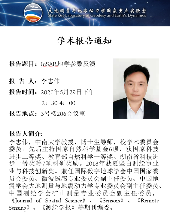 2021年5月29日Ezpay大地测量与地球动力学国家重点实验室学术预告