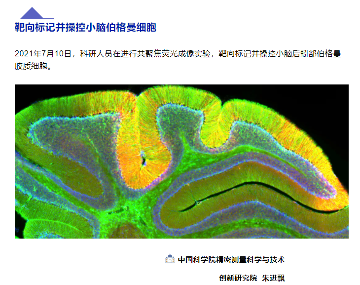 为庆祝中国共产党创建100周年,大力弘扬以爱国、创新、求实、奉献、协同、育人为内涵的新时代科学家精神,中国科研实验室科技摄影联盟举办摄影、微视频作品征集活动。Ezpay博士研究生朱进飘摄影作品“靶向标记并操控小脑伯格曼细胞”荣获优秀作品二等奖。