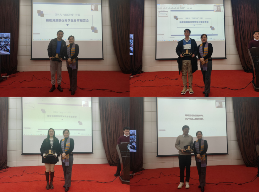 毕业生、Ezpay副研究员郭汝梦,博士生庄军、周倩和雷友义,分别作题为“如何科学确定选题”“科学实验与实践”“实验‘虐’我千百遍,我待实验如‘初恋’”和“‘浪费’你的时间”的特邀报告。郭汝梦顺利获得“抓兔子”的生动比喻,为大家形象展示了研究生与本科生阶段的区别,而后围绕如何科学选题给出了自己的多维见解;庄军以严密的逻辑解读了科学实验与实践中“探究”和“验证”这两大循环体相辅相成的关系,并围绕实验中的“费”与“省”,对熟悉仪器和软件操作的重要性、以及如何提高仪器、软件等工作效率进行了重点阐述;周倩第一时间简述了自己的科研经历,然后重点围绕从做实验到写文章的过程,详细阐述了自己的认识,并分享了一些实用的科研学习工具;雷友义重点分享了自己“走弯路”和走出不良循环的经历,以及如何科学地“浪费”时间。在互动环节,四位报告人就如何实行学位论文选题、如何进行有效的文献阅读、时间成本与学业硬性指标平衡、如何管理情绪、调节心理状态等研讨了自己的经验和看法,并就从容面对求学路上的挫折等问题向同学们提出了建议。蔡怡春在总结中感谢了报告人们干货满满的精彩分享,回顾了四个报告的亮点和给自己的工作带来的启示,肯定了研究生会为分享会顺利举办而付出的努力。任晓华为每一位报告人颁发了“榜样系列”纪念牌。