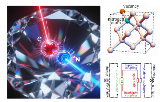研究团队基于金刚石氮-空位色心体系,提出了一种能够延缓自放电的量子电池方案,为解决量子电池中自发放电这一关键科学问题给予了全新的思路。该方案采用金刚石氮-空位色心中的电子自旋作为量子电池的物理载体,其周围的碳-13原子核自旋库诱导电子自旋发生退相干,从而引发量子电池的自放电现象。由于量子电池中的相干可提取功比非相干可提取功衰减更缓慢,该研究提出顺利获得在充电过程中提升相干可提取功的占比,来增强量子电池对自放电的抵抗能力。更为有趣的是,金刚石氮-空位色心体系中特有的电子与氮-14原子核自旋之间的超精细耦合,为提高相干可提取功占比给予了理想的调控手段。该研究首次同时实现了对量子电池可提取功的优化与自放电的有效控制,对于有助于量子电池的物理实现具有重要理论指导意义,同时展示了金刚石氮-空位色心体系在量子能源器件开发中的巨大潜力。该研究是团队继2024年提出抗老化的远距无线充电量子电池方案后,取得的另一项重要成果。